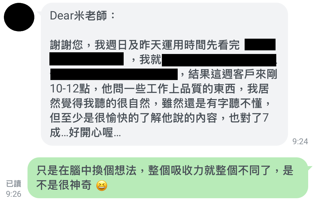 大概了解你的狀況後,我會看是否有需要進一步跟你約時間線上聊聊 (Line 語音通話),進一步評估我是不是真的能幫助你。