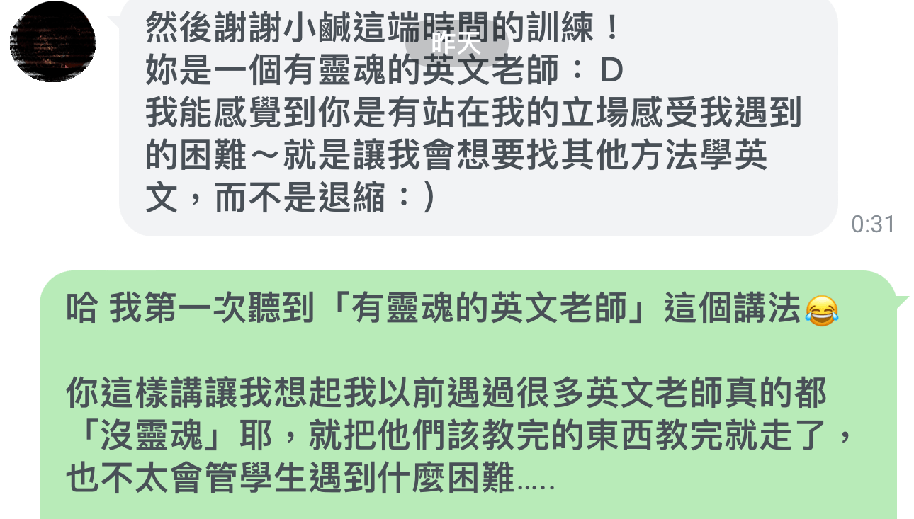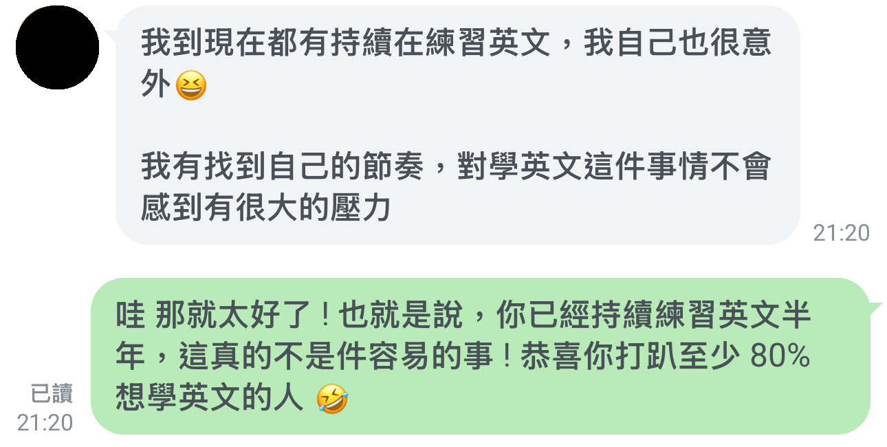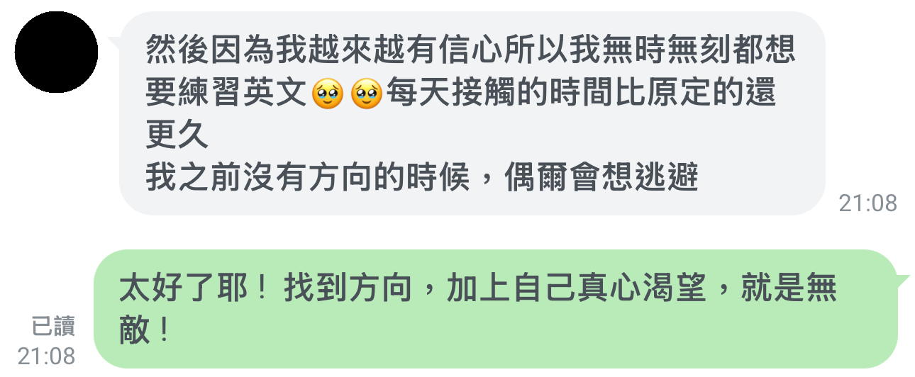 - 我國中才開始正式學英文,受台灣傳統英文教育長大,20 歲以前幾乎是「英文聾啞人士」,看到阿豆仔第一個反應是趕快跑,歷經了好幾年痛苦又無助的自我摸索期,才慢慢看到一線曙光。